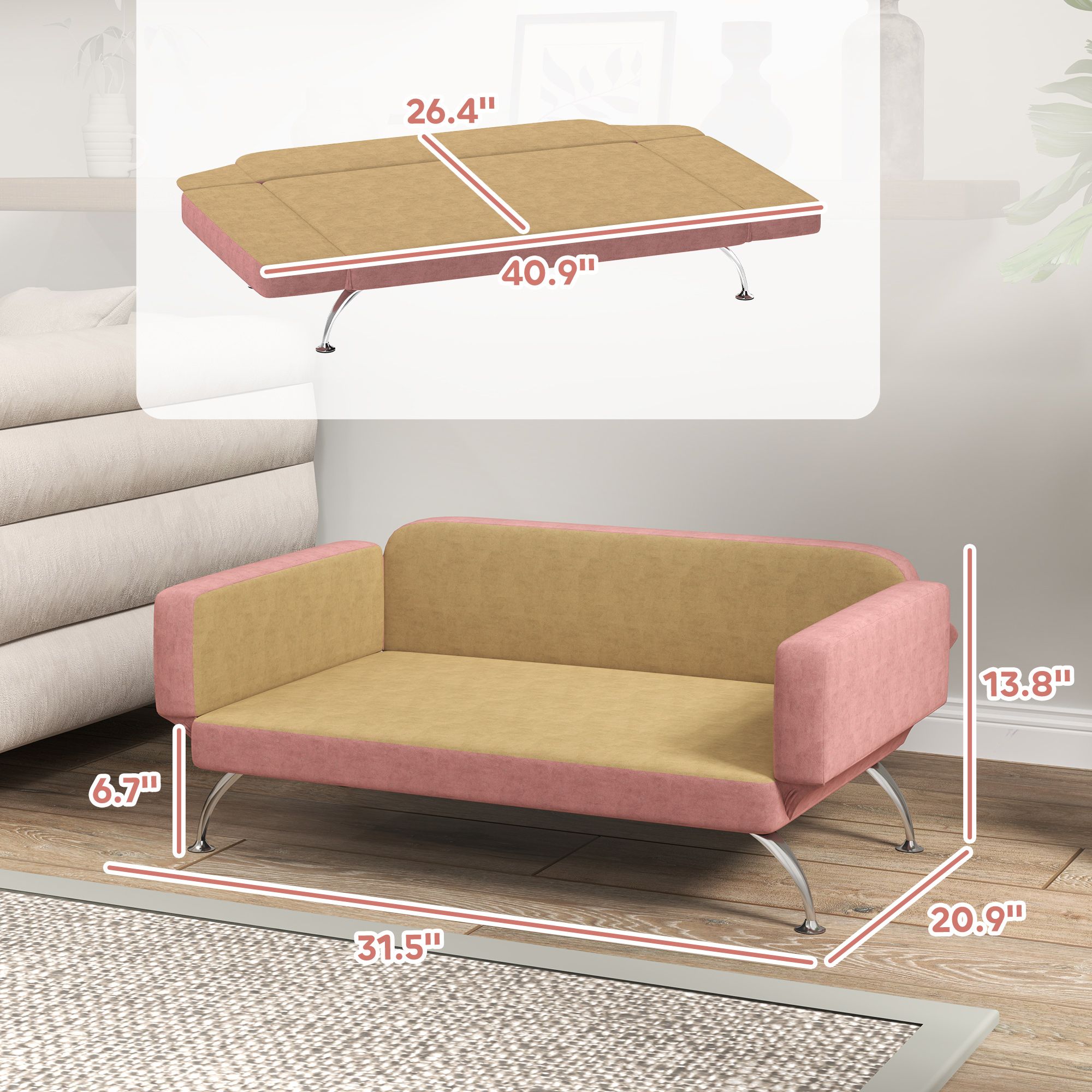 5.- Pet Couch Info: Dimensions: 31.5" L x 20.9" W x 13.8" H. Maximum load: 66 lbs. Easy assembly