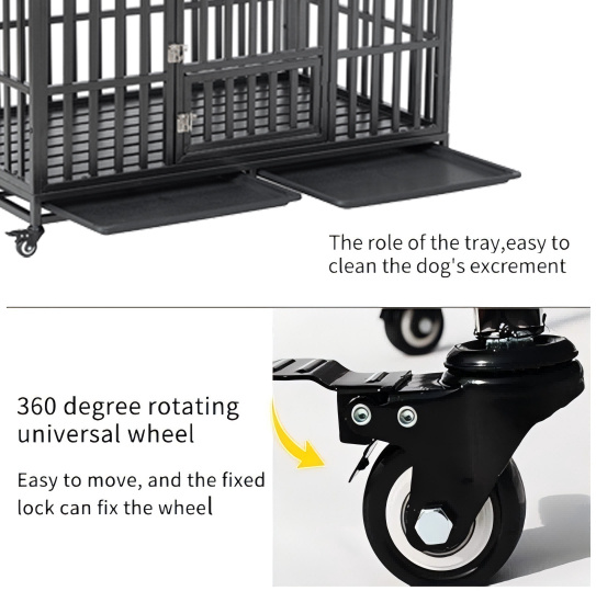 52" Heavy Duty Dog Crate Large Dog cage Strong Metal Dog Kennels and Crates for Large Dogs with 4 Lockable Wheels