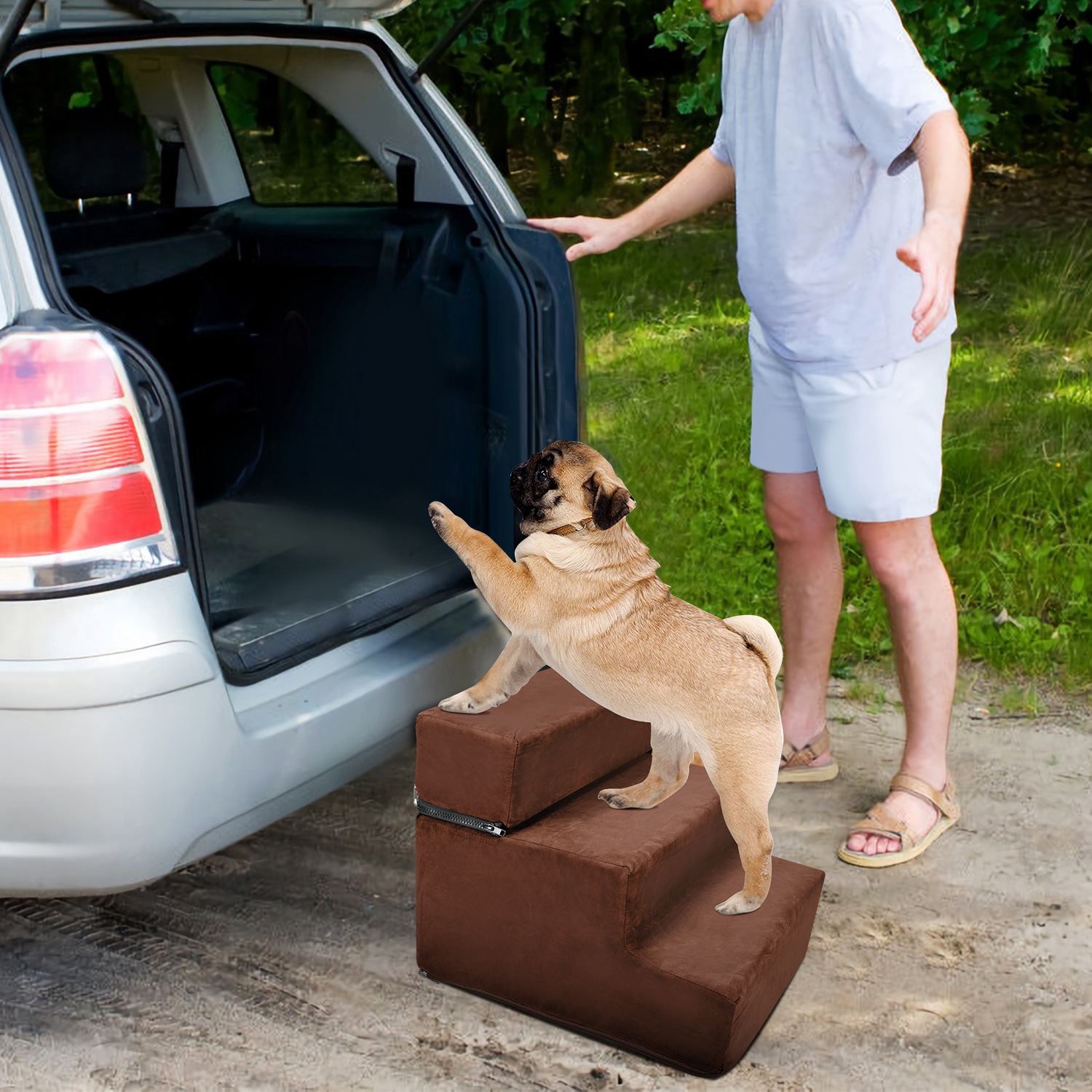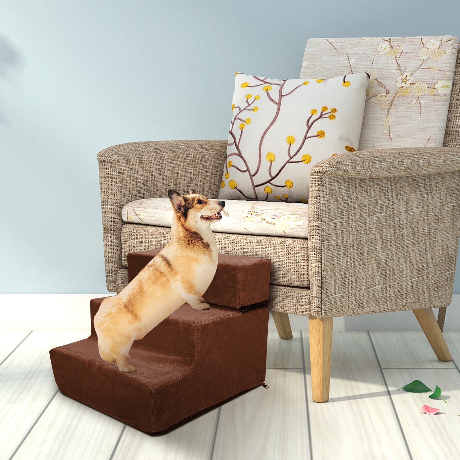 Home > Dog Stairs Pet Step For Bed Couch Sofa Car 3 Steps Soft Foam Detachable Dogs Cats Climb Ladder