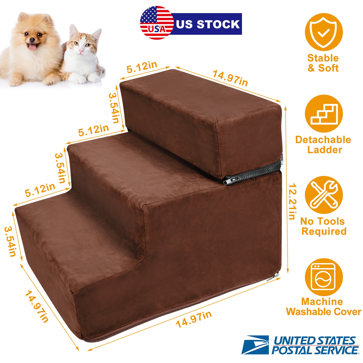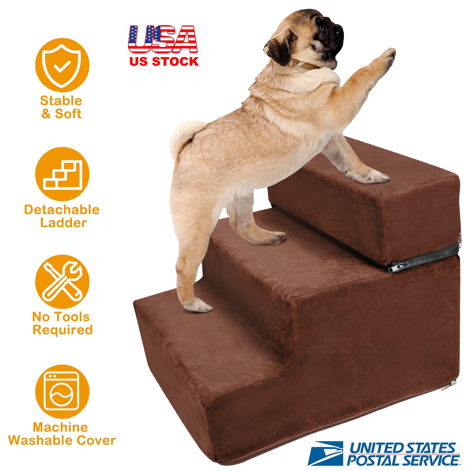 Dog Stairs Pet Step For Bed Couch Sofa Car 3 Steps Soft Foam Detachable Dogs Cats Climb Ladder