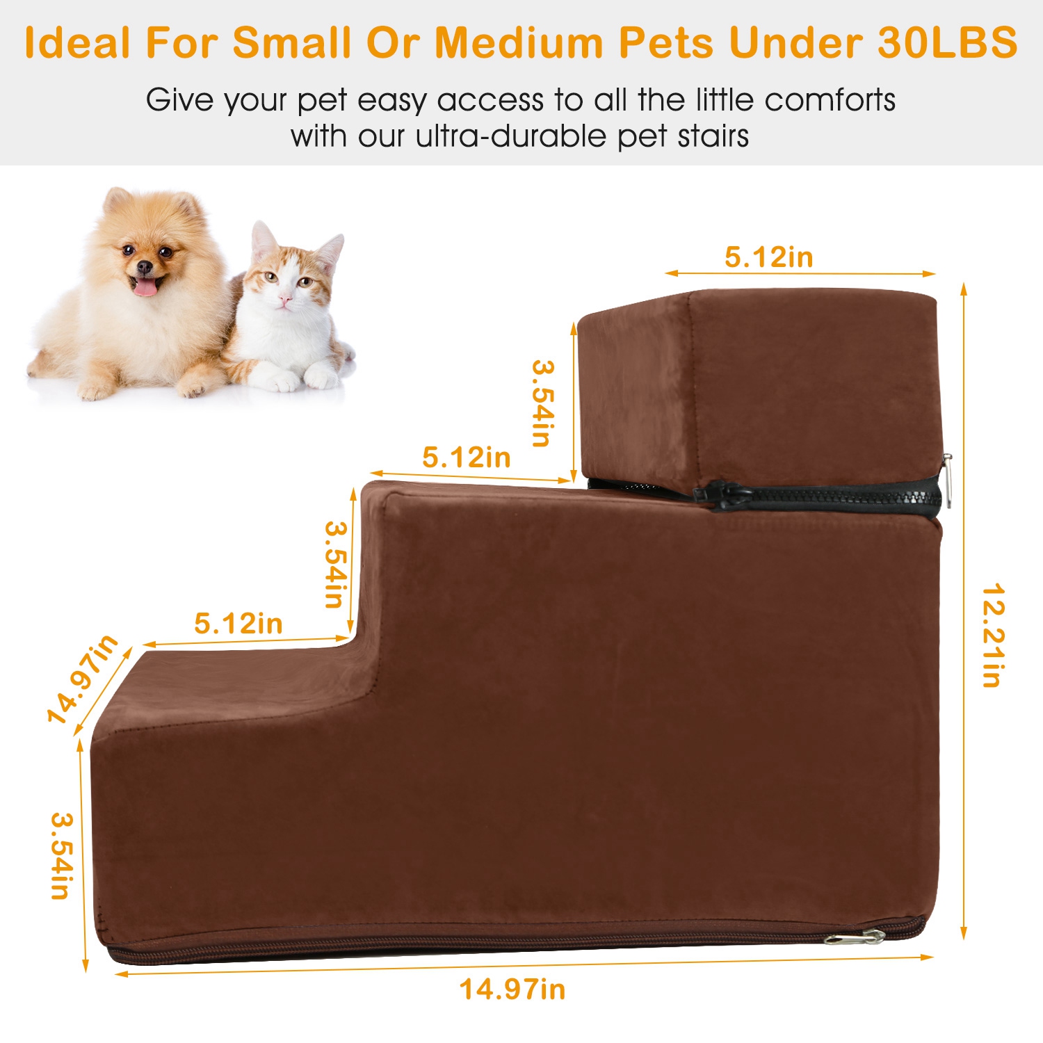 Home > Dog Stairs Pet Step For Bed Couch Sofa Car 3 Steps Soft Foam Detachable Dogs Cats Climb Ladder