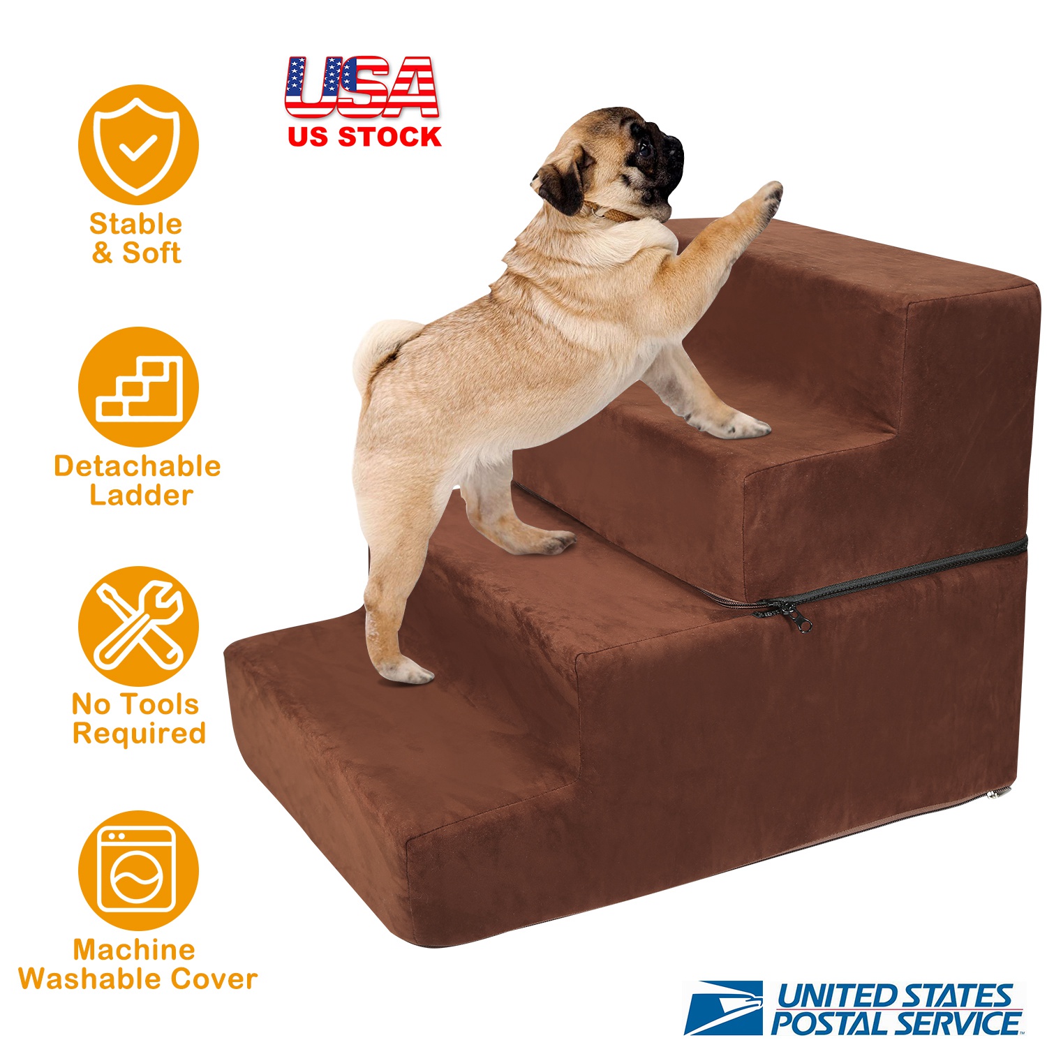 Dog Stairs Pet Step For Bed Couch Sofa Car 4 Steps Soft Foam Detachable Dogs Cats Climb Ladder