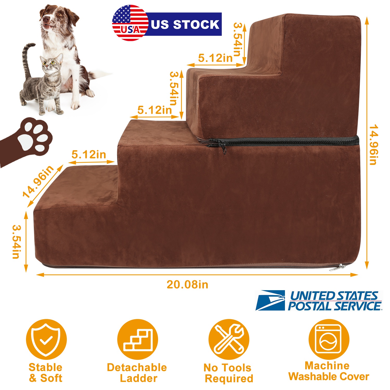 Home > Dog Stairs Pet Step For Bed Couch Sofa Car 4 Steps Soft Foam Detachable Dogs Cats Climb Ladder