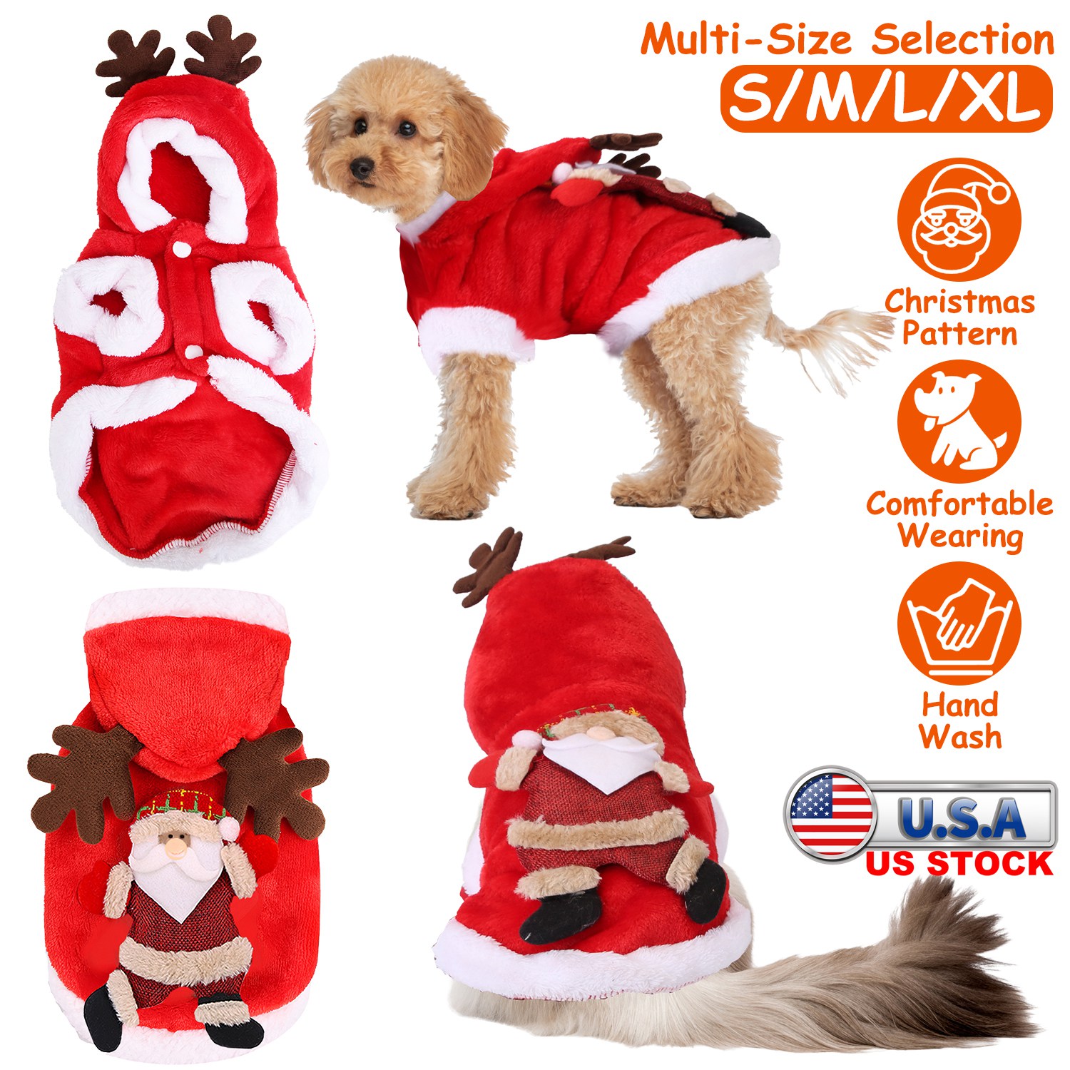 Pet Christmas Clothes Santa Claus Reindeer Antlers Costume Winter Outfit New Year Coat For Small Medium Dogs Cats Available in S/M/L/XL