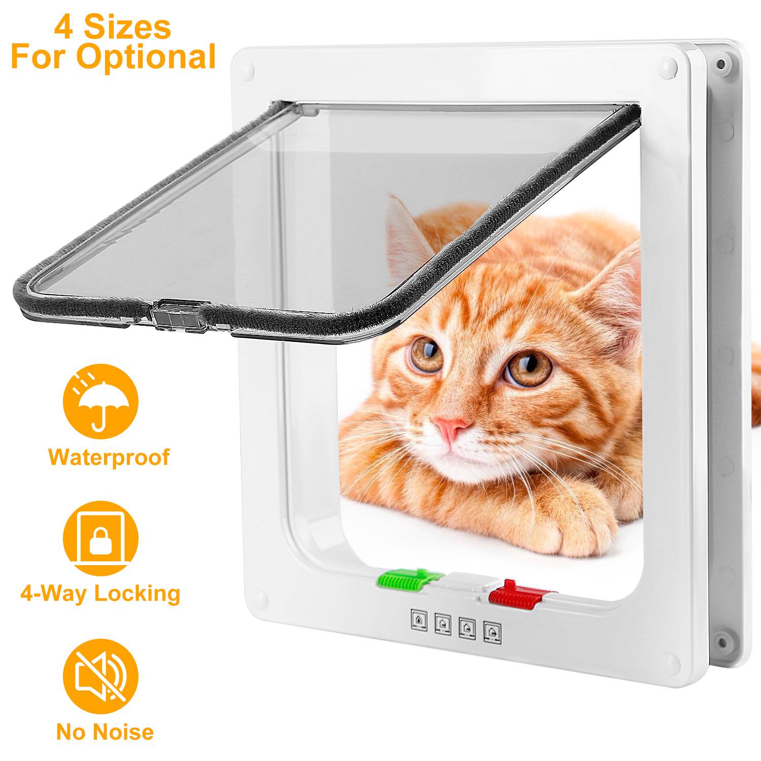 Home > Cat Door Pet Gate 4 Way Locking Flap Door Quiet Interior Exterior Door For Cat Dog Easy To Install On Door Window w/ 4 Size For Optional