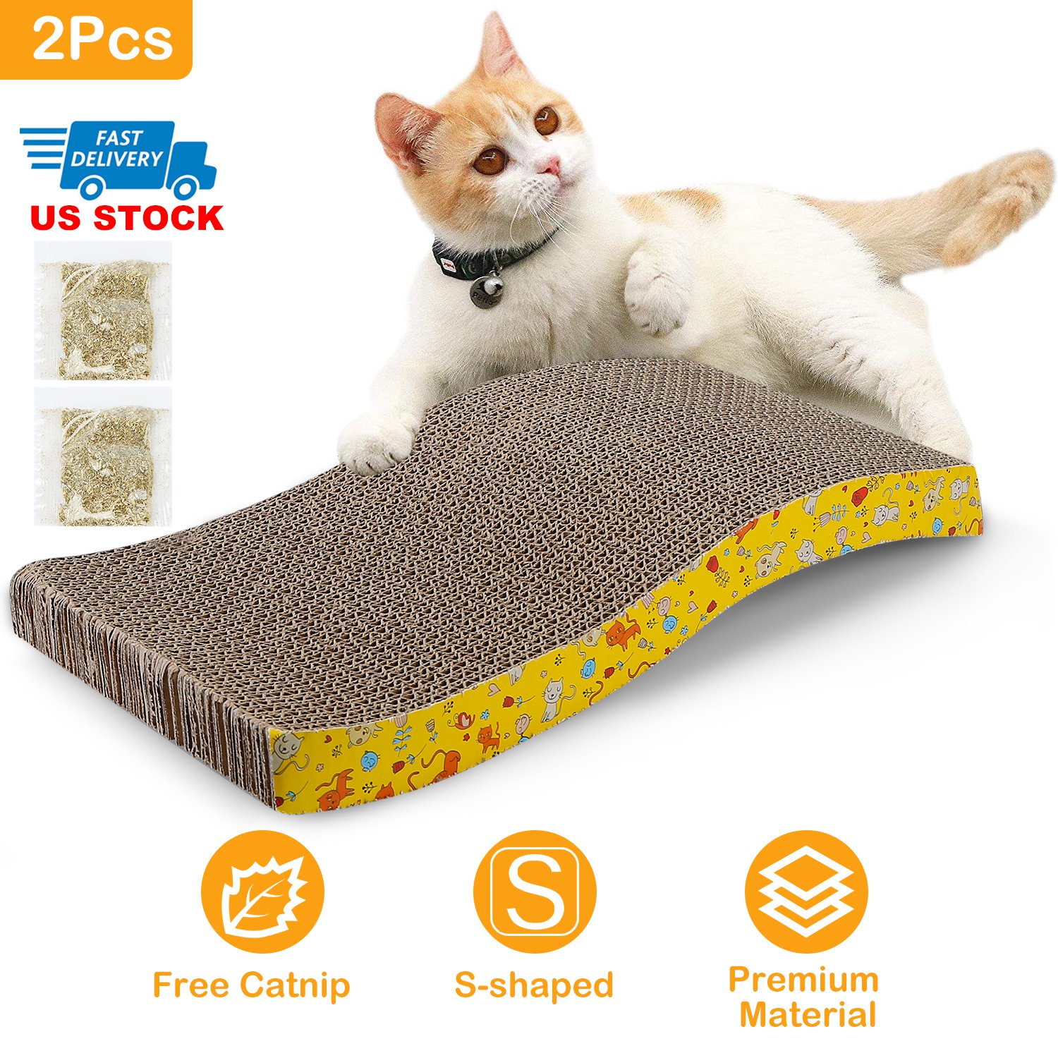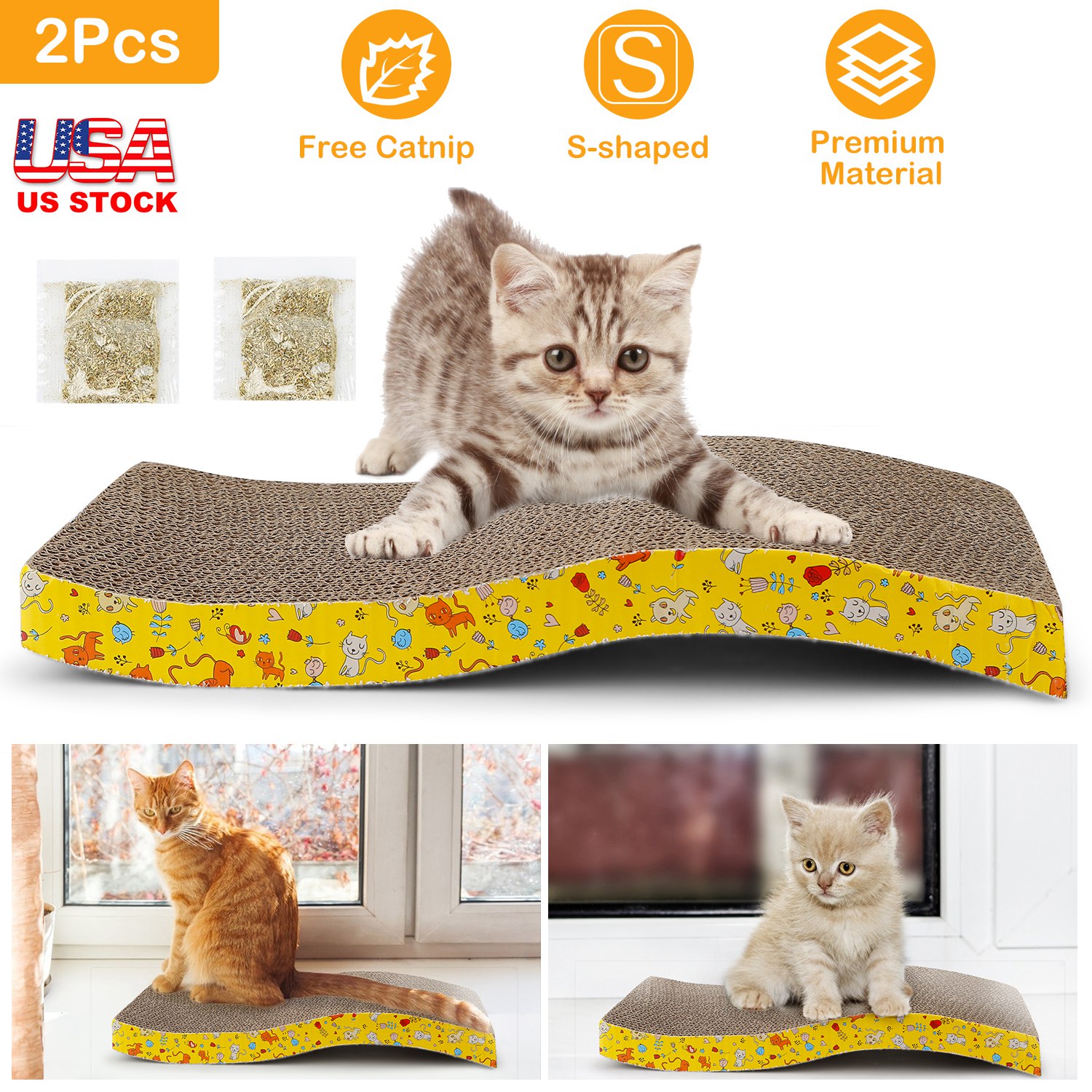 Home > 2Pcs Cat Scratcher Pads Scratcher Cardboard S-shaped Curve Cat Scratching Pad Durable Texture Design w/ Catnip
