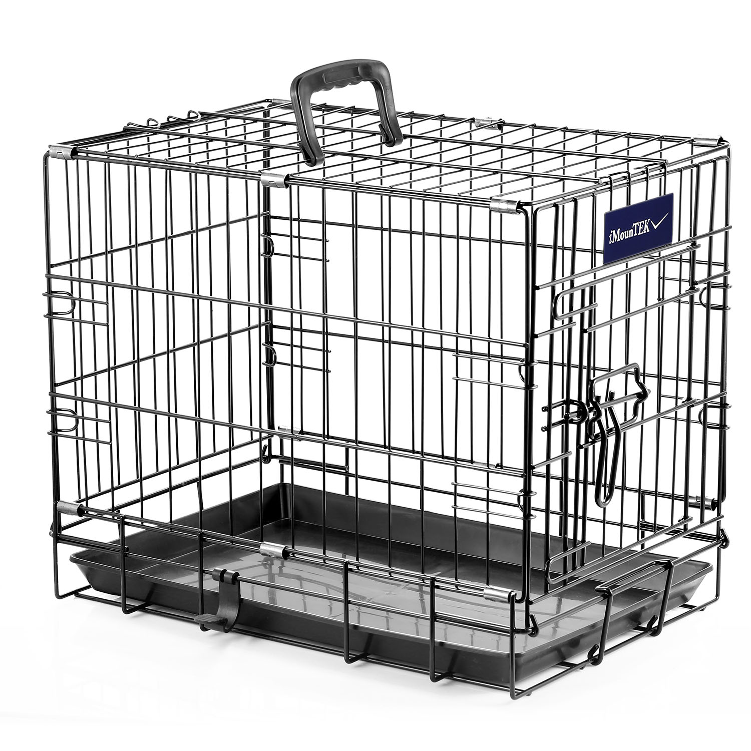 Our iMounTEK dog crate with large swing-open door on the front for front entry, which is ideal for both puppies and adult dogs come in and out conveniently. The two slide-bolt door latches for increased safety and security. Owing sturdy foldable metal construction, easily folds flat for easy storage or portability, The bottom of the crate comes with a plastic tray so that the dog’s paws cannot slip through, and the tray is removable and easy to wash..