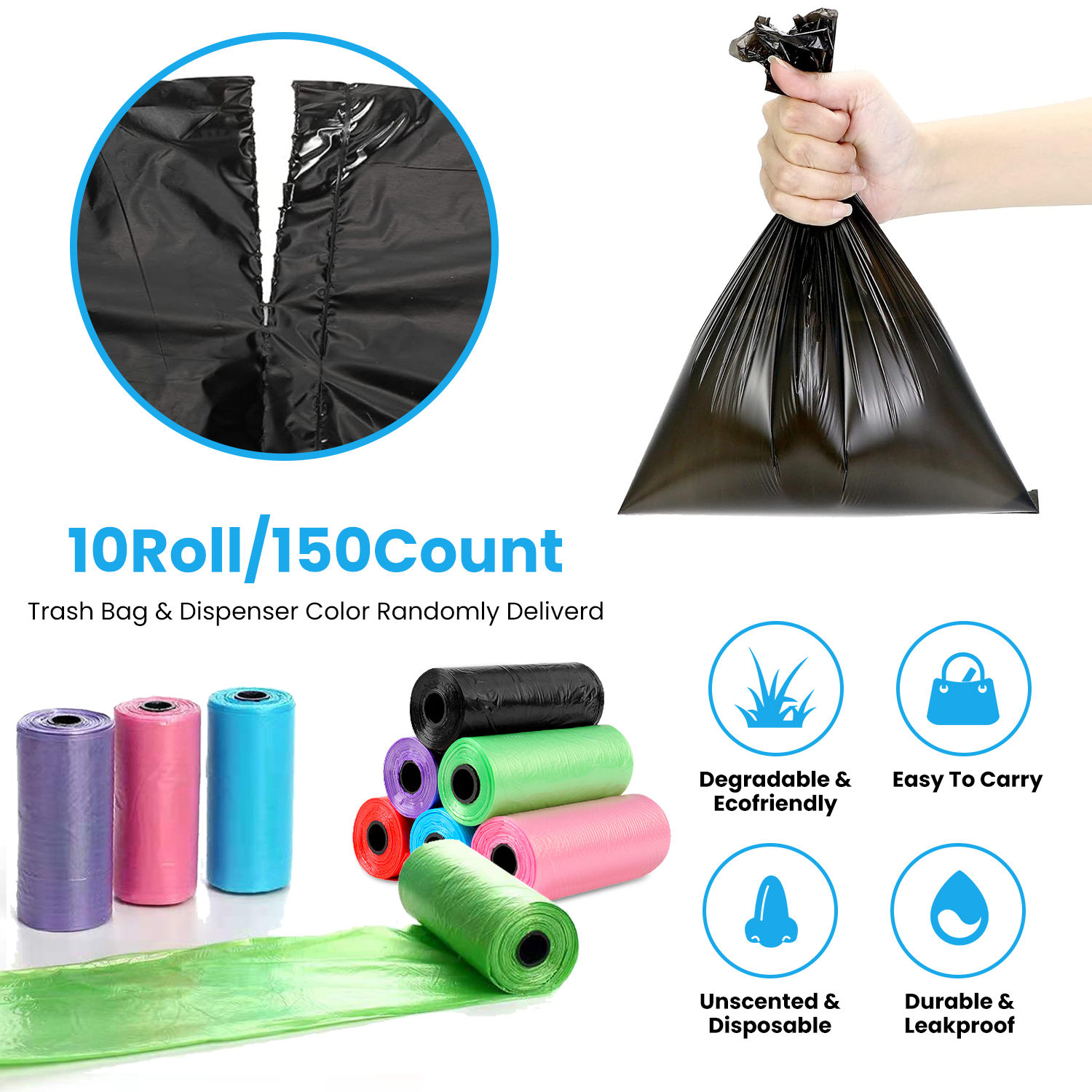 10 Rolls 150 Count Dog Waste Bags Disposable Dog Poop Bags with Dispenser Leakproof Ecofriendly Unscented