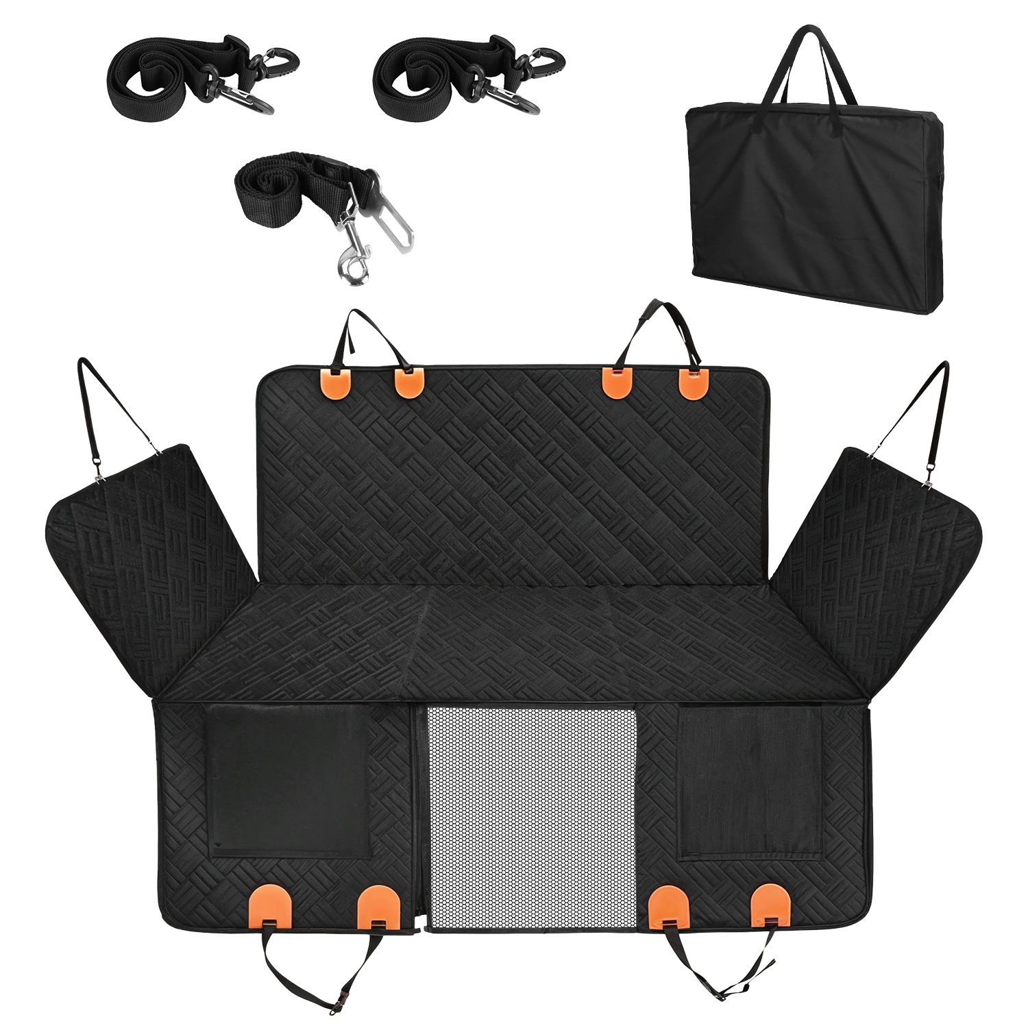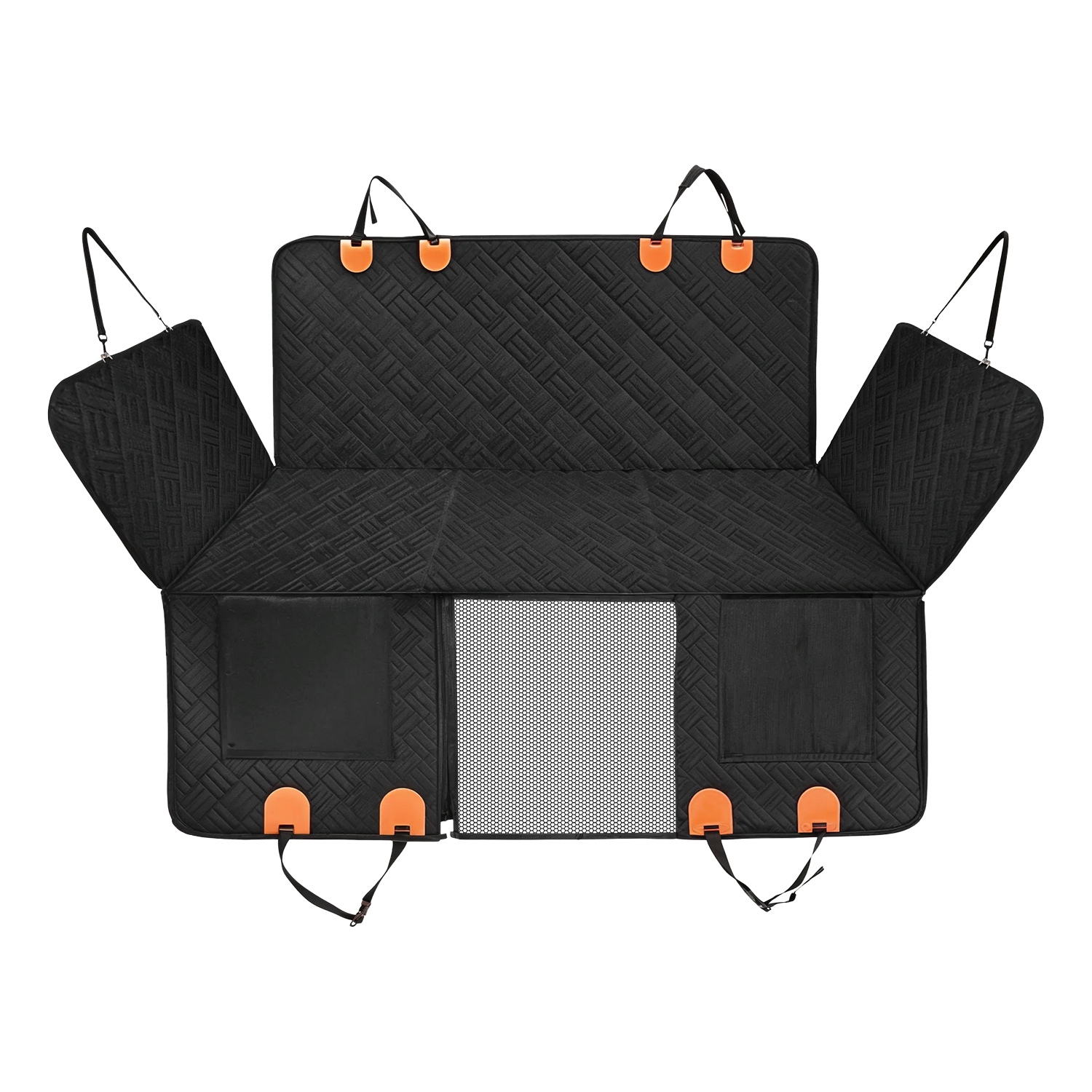 Dog Car Seat Cover For Back Seat Waterproof Oxford Cloth Seat Cover Hammock Non-Slip Scratchproof Back Seat Extender with Side Flap Mesh Window Storag