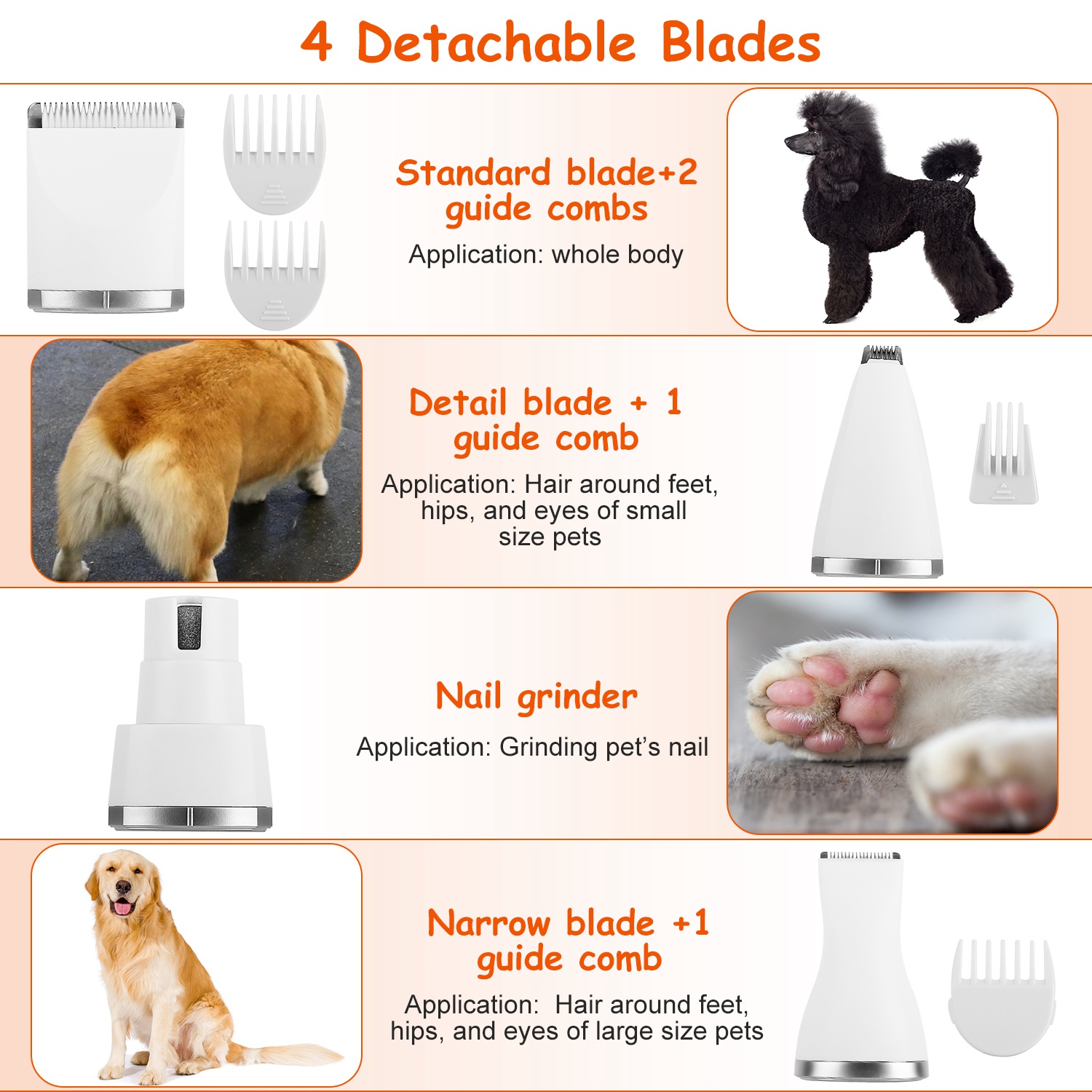 4 In 1 Electric Pet Dog Cat Grooming Kit Cordless Rechargeable Pet Hair Trimmer Shaver Set Low Noise Nail Grinder with 4 Guide Combs 4 In 1 Electric Pet Dog Cat Grooming Kit Cordless Rechargeable Pet Hair Trimmer Shaver Set Low Noise Nail Grinder with 4 Guide Combs 4 In 1 Electric Pet Dog Cat Grooming Kit Cordless Rechargeable Pet Hair Trimmer Shaver Set Low Noise Nail Grinder with 4 Guide Combs 4 In 1 Electric Pet Dog Cat Grooming Kit Cordless Rechargeable Pet Hair Trimmer Shaver Set Low Noise Nail Grinder with 4 Guide Combs 4 In 1 Electric Pet Dog Cat Grooming Kit Cordless Rechargeable Pet Hair Trimmer Shaver Set Low Noise Nail Grinder with 4 Guide Combs