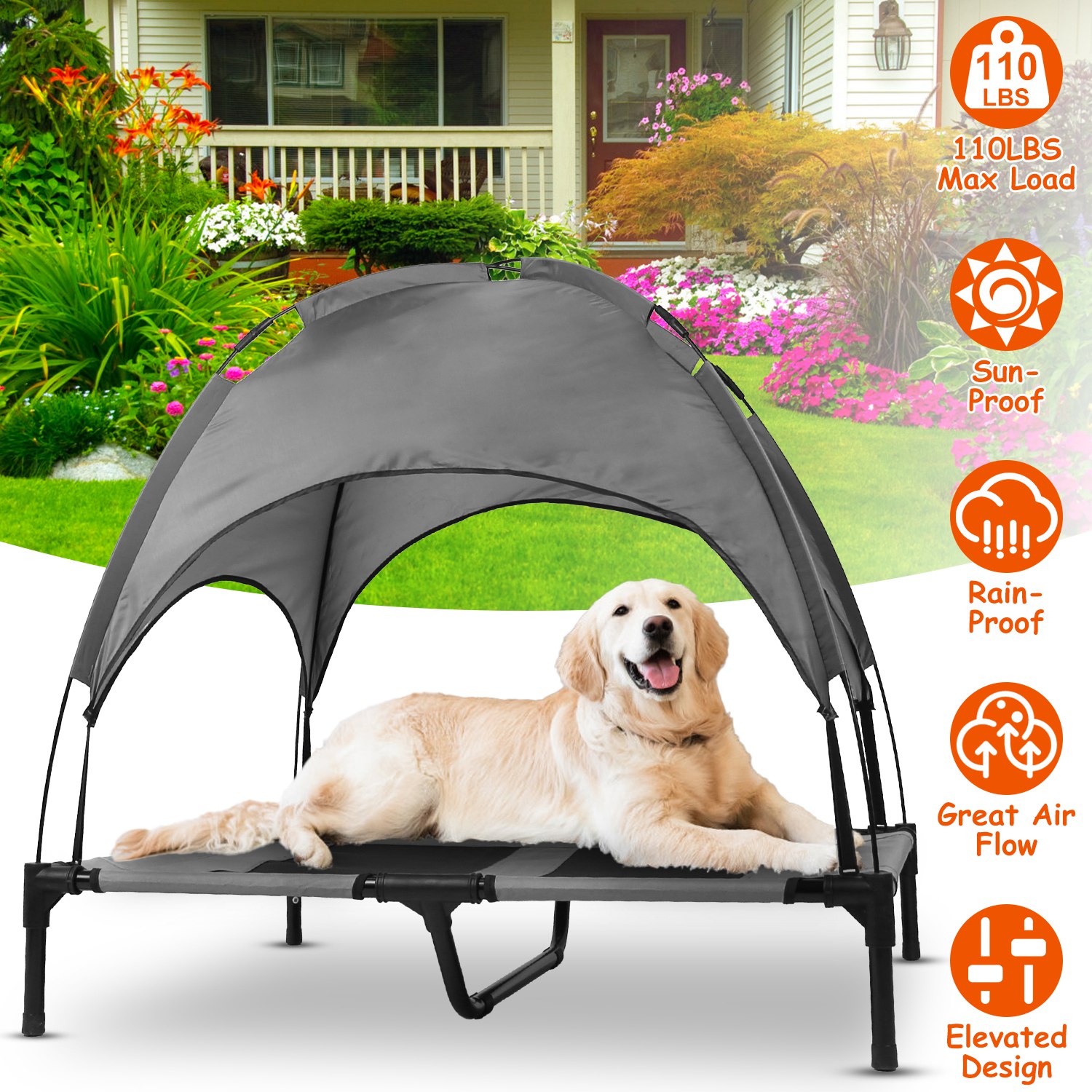 Home > Outdoor Elevated Dog Bed Cooling Raised Pet Cot Canopy Shade Tent Pet Cooling Bed with Removable Canopy for Outside Yard Camping Beach