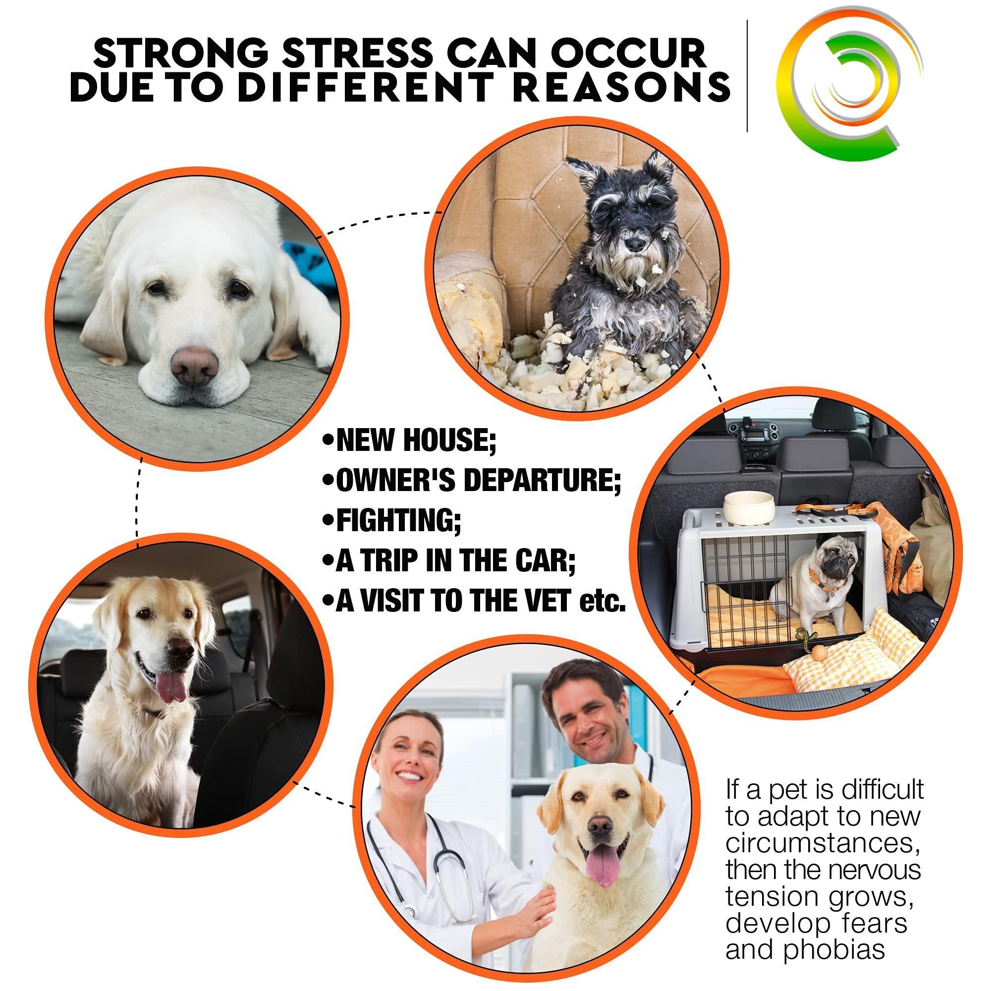 1.100% de-stress formula: we can provide assistance with traveling, boarding, and vet visits. changes to the home can cause stress for dogs. our calming collar will help to ease anxiety and reduce undesirable behaviors during thunder, fireworks
