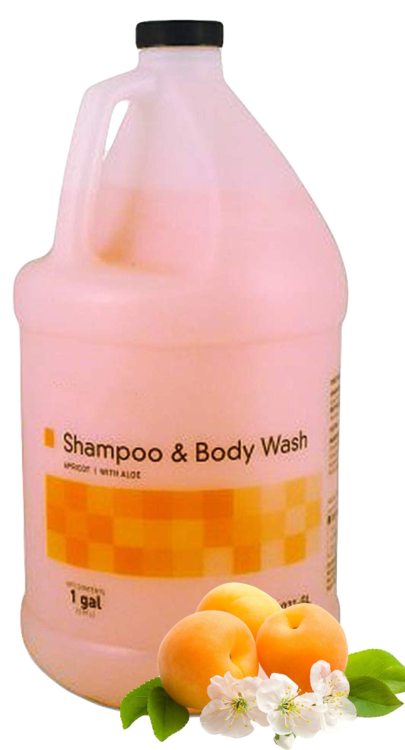 Skin and Hair Cleanser 1 gal. Case of 4 Shampoo & Body Wash with Lanolin, Aloe Vera and collagen. Skin care solution for showers or baths. Natural conditioners & Pleasant Apricot Scent.